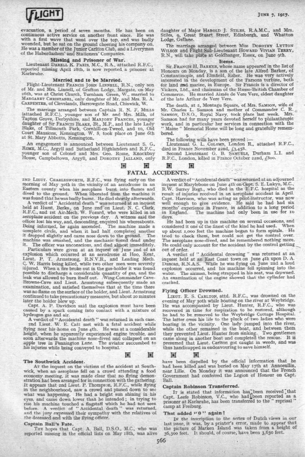 Flight Magazine Fatal Accident Report 7 June 1917