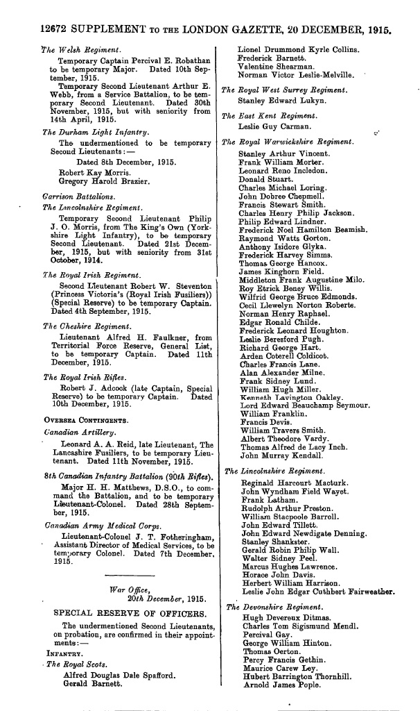 London Gazette Lukyn 20 December 1915
